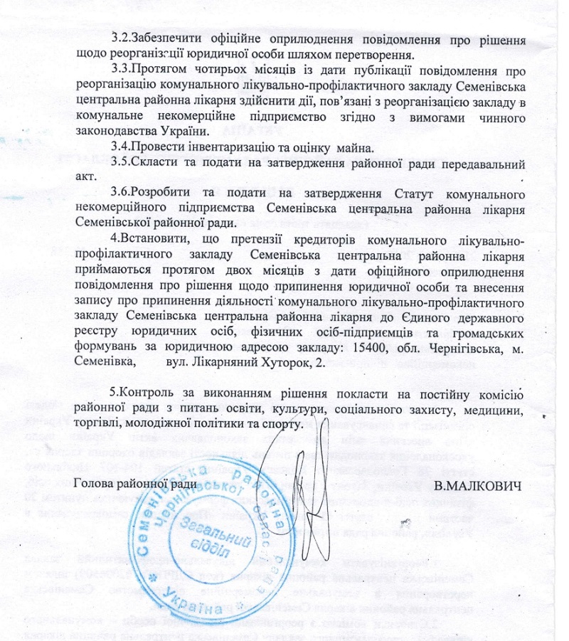 Ознайомитись з рішенням про реорганізацію Комунального лікувально-профілактичного закладу Семенівська районна лікарня у комунальне некомерційне підпримєство